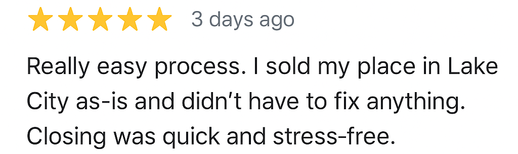Want to share your own experience with us? Send us a note to let us know what working with Lake City Home Buyers has been like for you.