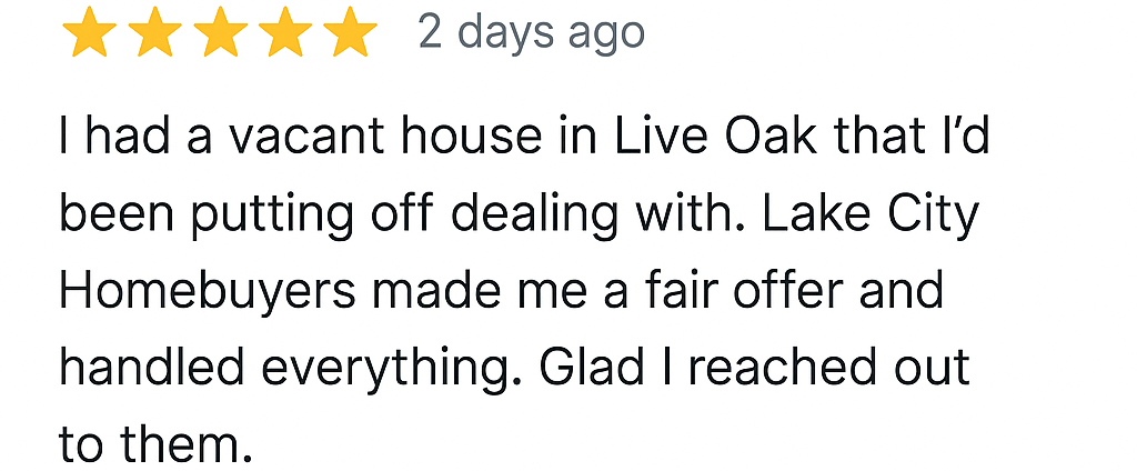 Selling your Lake City Florida house to a direct cash buyer like Lake City Home Buyers may be a new concept for most. See how we’ve helped other local property owners sell with confidence, for a fair price, on their own schedule without traditional real estate hassles and fees.